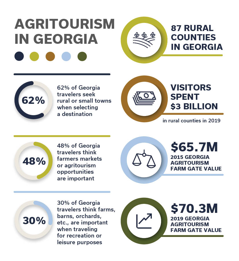 Money may be available for agritourism operators to market their venues and services. Portions of tourism-related taxes like the $5 per night state hotel fee and other hotel/motel taxes are designated to be funneled back into rural communities for economic development. This revenue from the 87 rural Georgia counties increased from $260.5 million in 2015 to $314.9 million in 2019.
