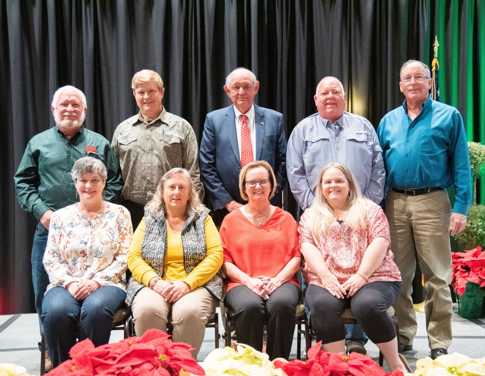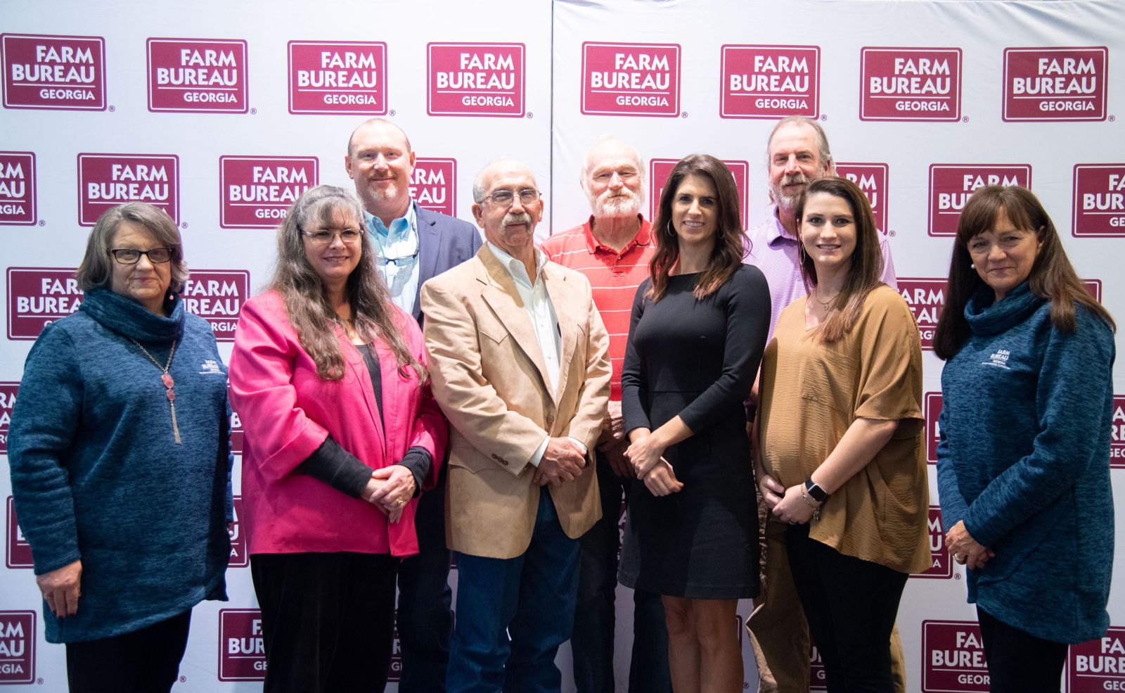 Congratulations to the 2022 Georgia Farm Bureau District Volunteers of the Year for their extraordinary efforts to promote agriculture in their local communities. Pictured from left are: 8th District - Vickie Brown, Turner County; 2nd District - Wendy Fuschetti, Banks County; 10th District - Cory Tyre, Bacon County; 4th District - Charles Crumbley, Greene County; 3rd District - Glenn Robinson, Polk County; 7th District - Emily Nolan, Wayne County; 5th District - Bill Waldrep, Monroe County; 9th District - Lisa Pollock, Grady County; & 6th District - Kathy Sanders, Laurens County. / Photo by Logan Thomas