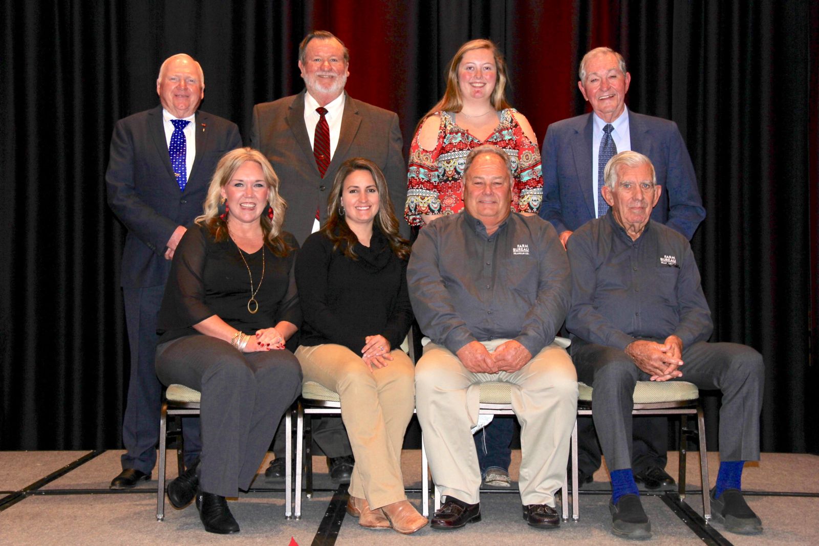 GFB STATE AWARDS PHOTO CUTLINE : Georgia Farm Bureau (GFB) honored county Farm Bureaus for promoting agriculture and individual members for personal achievement during the organization’s 82nd annual convention. GFB President Gerald Long (back row, far left) congratulates the 2019 GFB award recipients: (front row, from left) GFB Outstanding Office Manager Staci Waters of Barrow County; Heather Cabe accepting the GFB Outstanding Women’s Leadership Committee Award for Franklin County Farm Bureau; Michael Thomason accepting the GFB McKemie Award in the organization’s large membership category for Franklin County; and Max Freeman accepting the GFB Outstanding Promotion & Education Committee Award for Franklin County; (back row, second from left) David Lee accepting the GFB McKemie Award for Bacon County Farm Bureau in GFB’s small membership category; Madison Atkins accepting the GFB Outstanding Young Farmer Committee Award for Polk County Farm Bureau; and James Casey accepting the GFB McKemie Award for Polk County in GFB’s medium membership category.