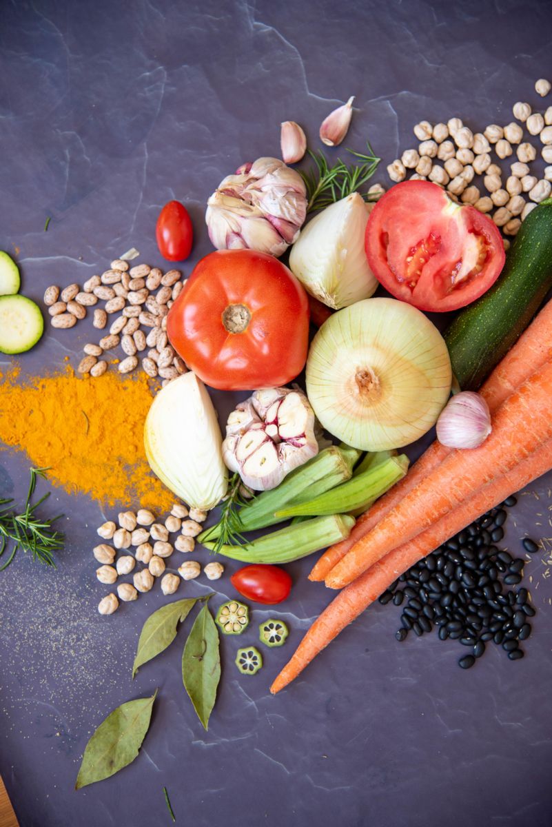 Rinse 2 1/2 cups mixed beans well. In a large pot, cover beans with water (3 inches above beans) and add a pinch of salt. Bring to a boil for 2-3 minutes. Remove from heat, cover and let soak for 1-1.5 hours. Drain and rinse well. - In a large stock pot, heat olive oil to medium-high. Saute diced onion and garlic 5-6 minutes, or until translucent and slightly softened, stirring frequently.