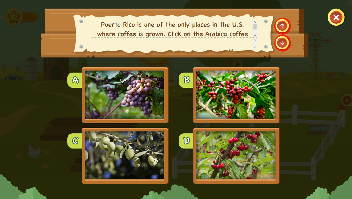 There are two primary learning objectives for the Ag Across America game; one, for students to be able to identify agriculture commodities grown in the United States and two, to be able to identify the 50 U.S. states and territories. The updated version of this geography-based game, features 100 new questions highlighting the agricultural diversity across the nation, including videos of real American farmers asking questions. The game shares key information about where our food and fiber come from, while reinforcing key curricular concepts related to geography.