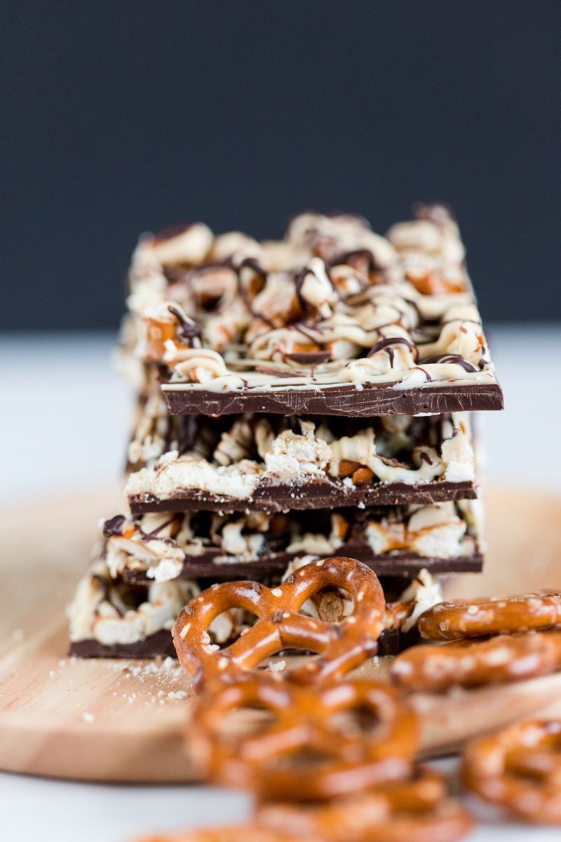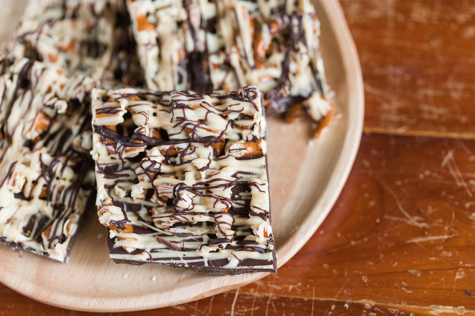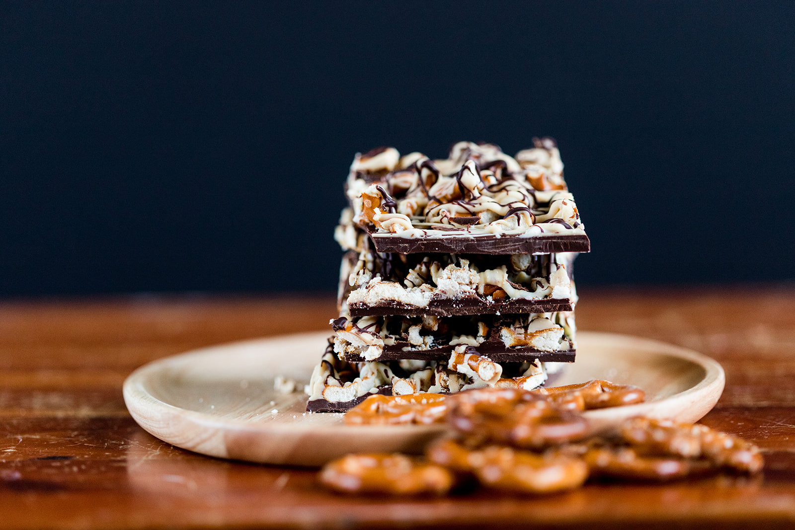 Peanut butter is an excellent source of protein and certainly a decadent treat when paired with the sweetness of chocolate and the saltiness of pretzels! This peanut butter pretzel bark is quick, easy and effortlessly impressive looking. Great for dessert or packaged as gifts for those you love, this bark will make everyone smile!
